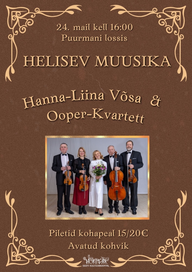 Lossikontsert “Helisev muusika” Pilet 15.-/20.- Hanna-Liina Võsa ja Ooper-Kvarteti ühine kava "Helisev muusika" Hanna-Liina Võsa ... 24 mai 16:00