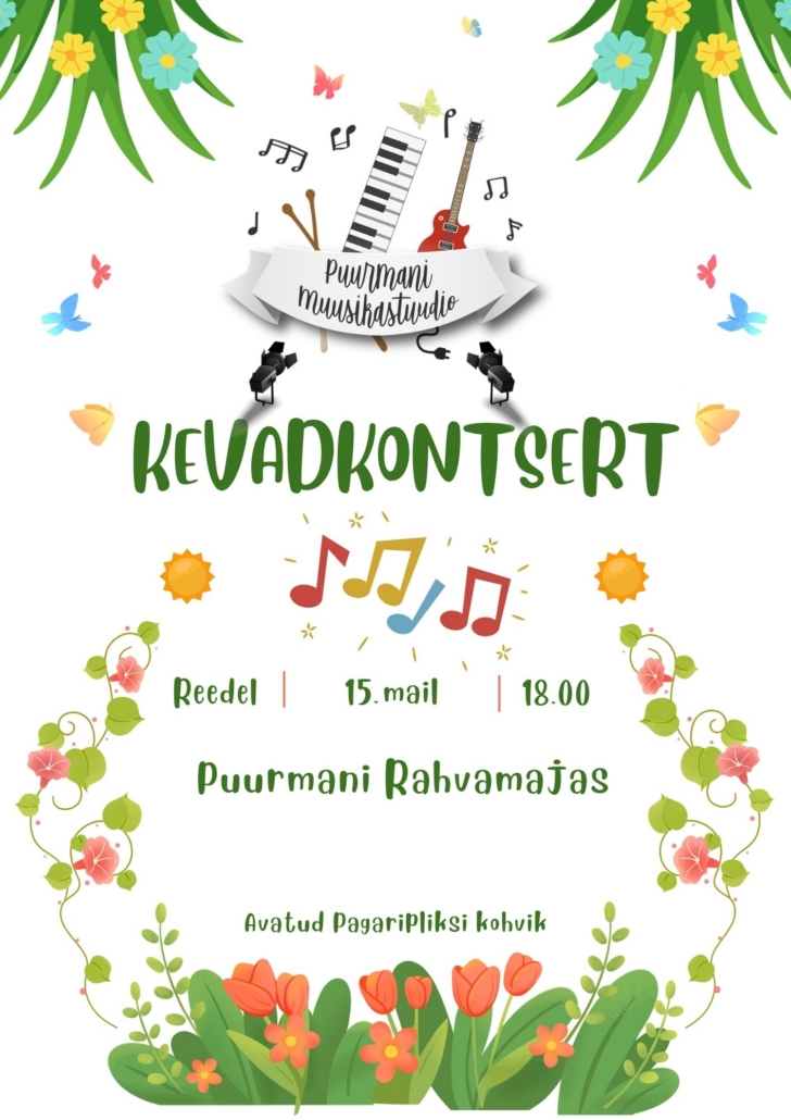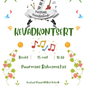 Muusikastuudio Kevadkontsert Puurmani muusikastuudio võtab hooaja kokku Kevadkontserdiga. Avatud Pagaripliksi kohvik. ... 15 mai 18:00
