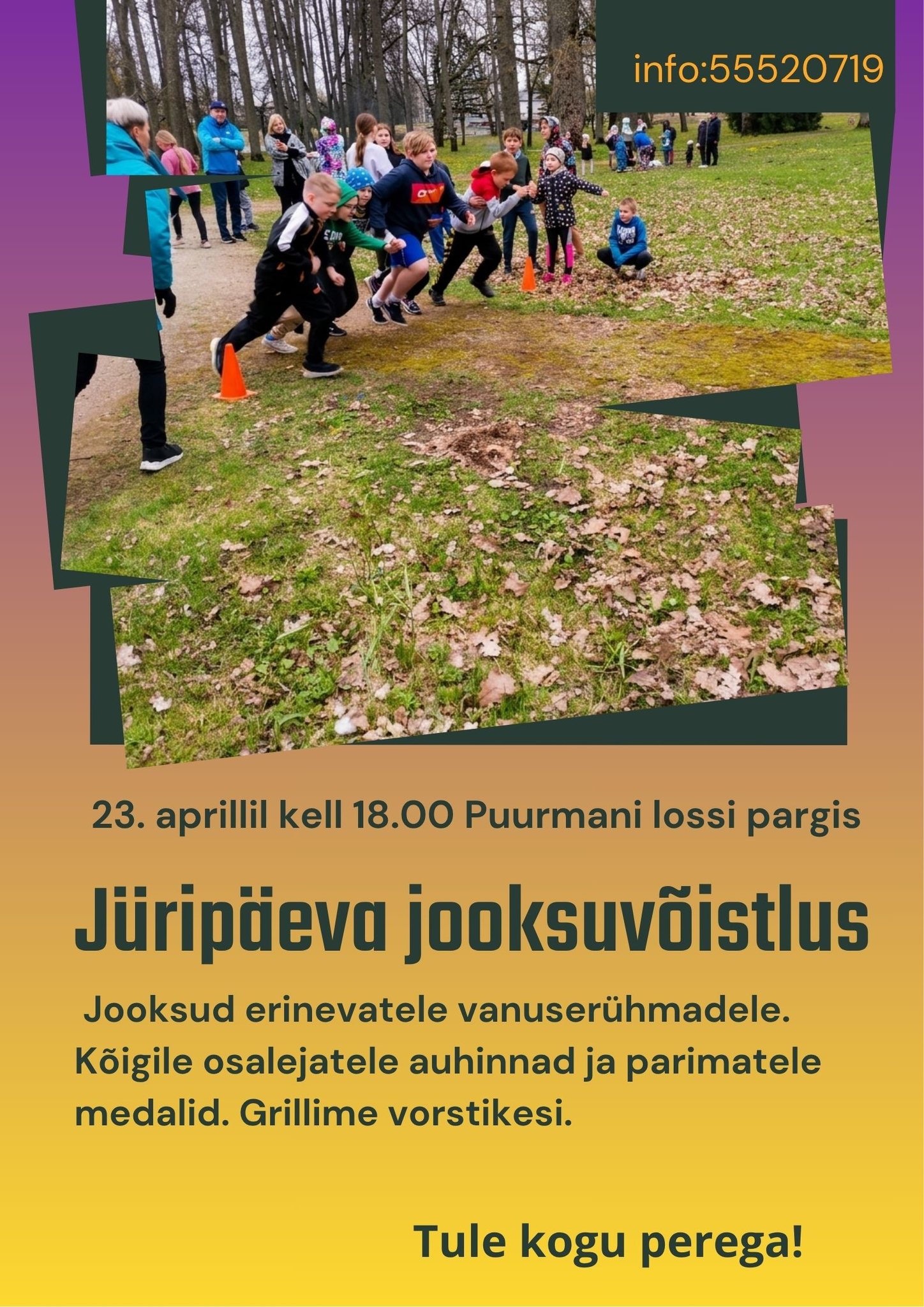 Jooksud toimuvad Puurmani lossi pargis ning on erinevatele vanuserühmadele. Kõigile osalejatele auhinnad ja parimatele medalid. Kõhu kosutuseks grillime vorstikesi. Tule kogu perega!