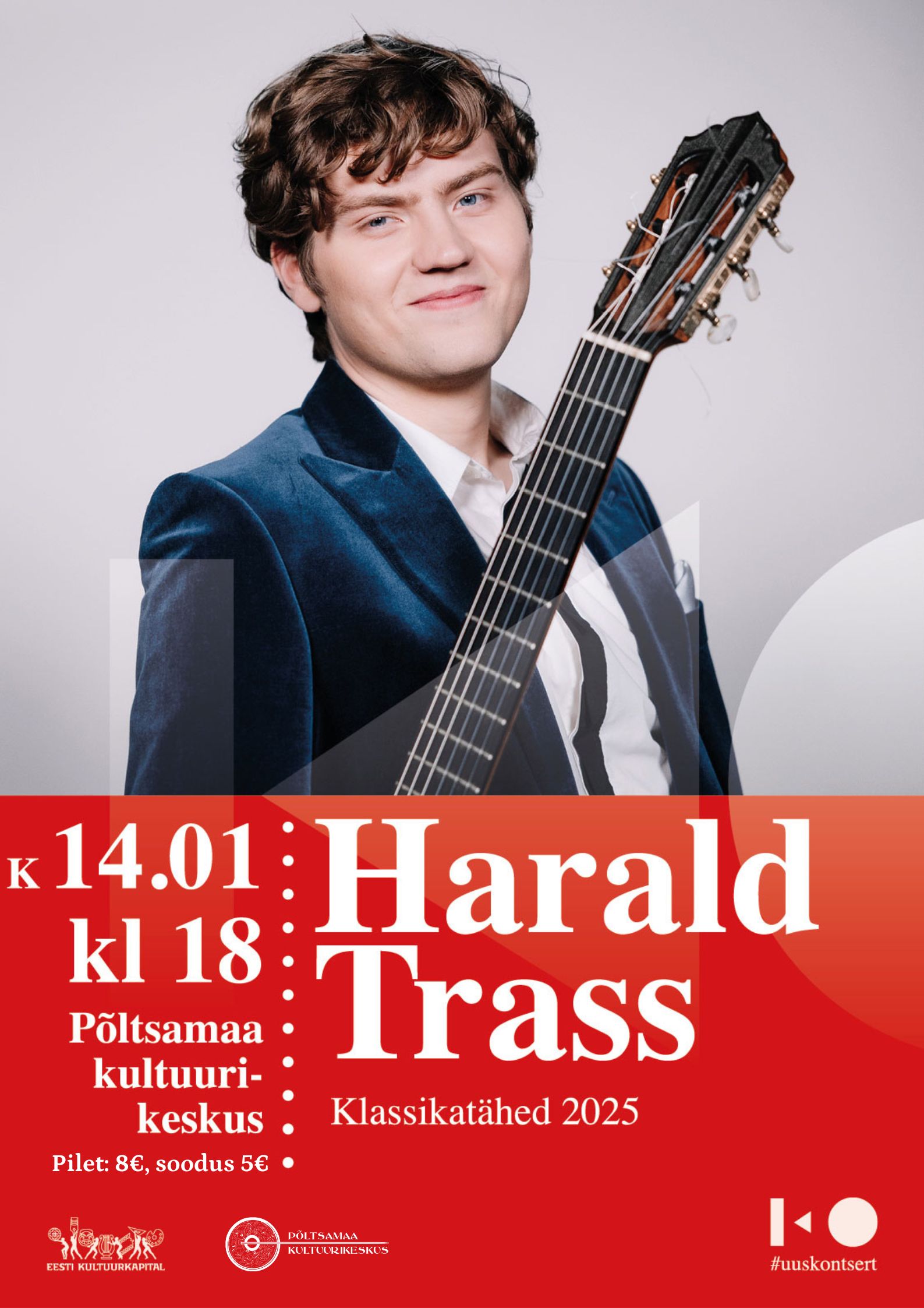 Klassikatähed 2025 – Harald Trass Pilet: 8€, soodus 5€ 00 päeva 00 tundi 00 minutit 00 sekundit Kuupäev 14 jaan. 2026 Aeg 18:00 - 19:30 Jaga