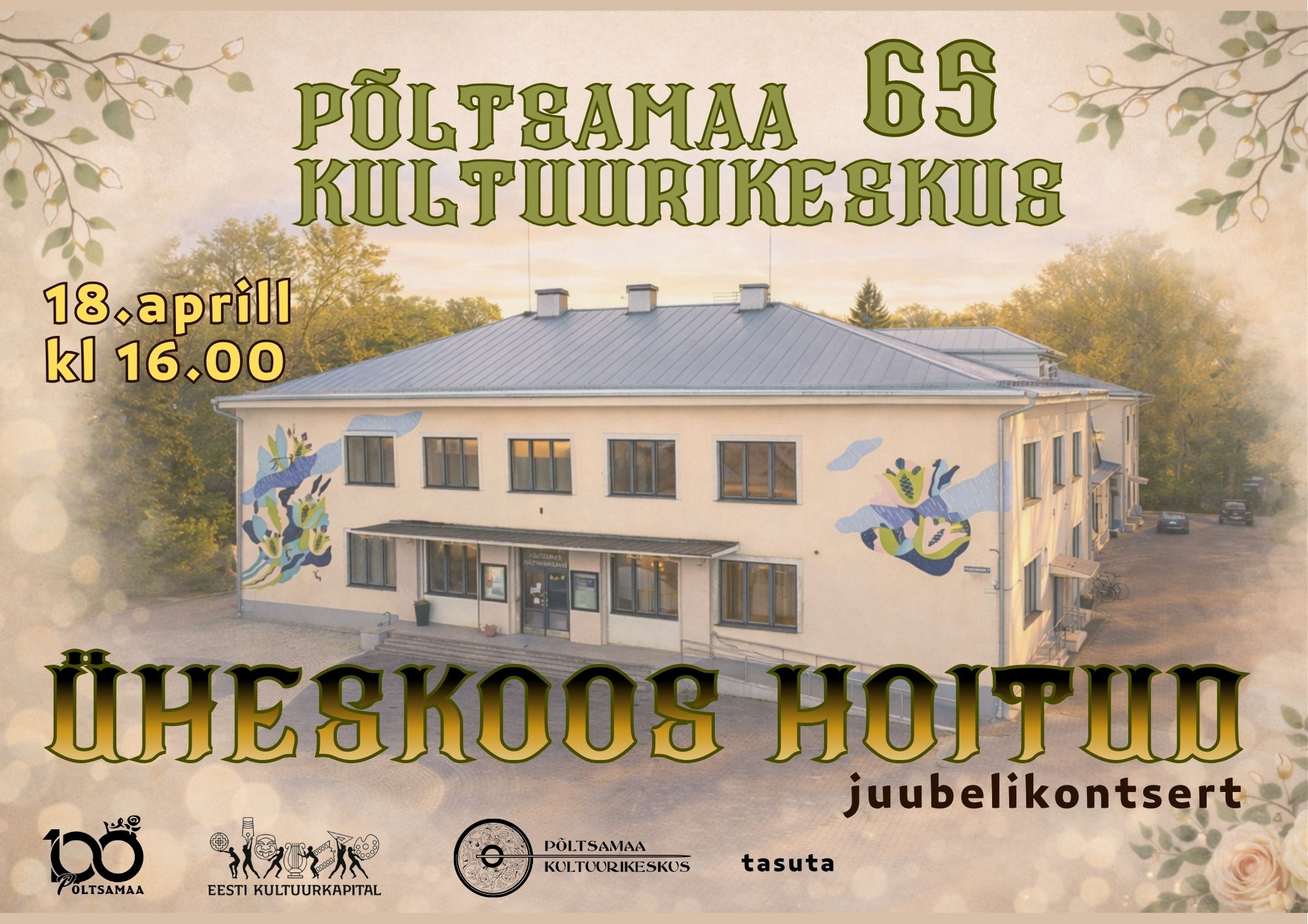 Põltsamaa Kultuurikeskus 65 juubelikontsert 00 päeva 00 tundi 00 minutit 00 sekundit Kuupäev 18 apr. 2026 Aeg 16:00 Jaga