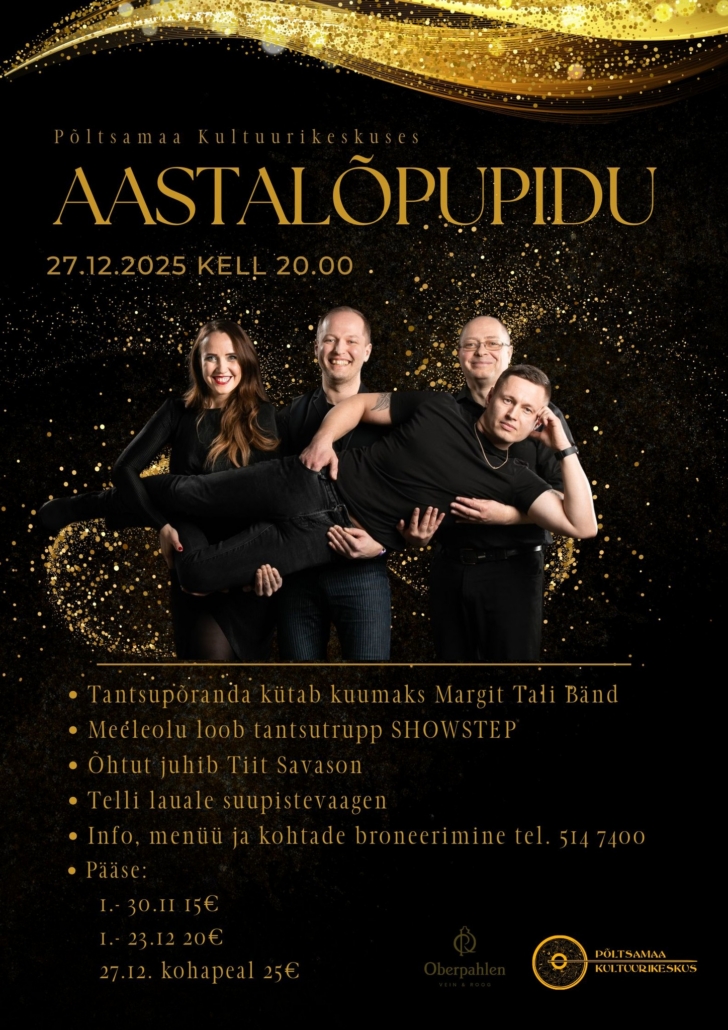 Aastalõpupidu ✨AASTALÕPUPIDU 27.12.25 Põltsamaa Kultuurikeskuses🥂 Tantsupõranda kütab kuumaks Margit Tali Bänd💃 Meeleolu loob ... 27 dets. 20:00