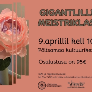 Gigantlille meistriklassOngoing Tule loome koos maagiat-GIGANTLILLEDE MAAGIAT Erakordne võimalus osaleda maagilises töötoas, kus ... 09 apr. 10:00 - 16:00